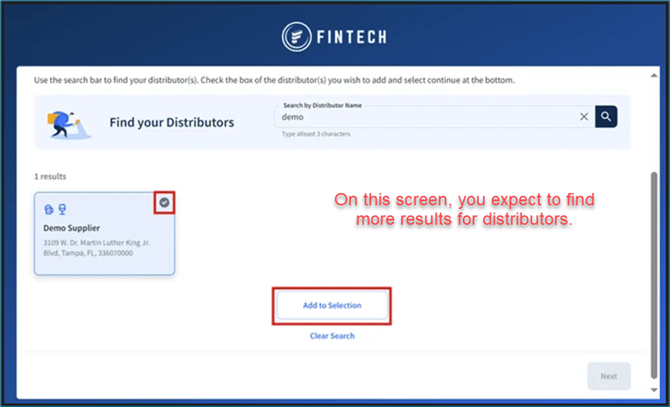 If your company does not populate on the screen after using the search bar, the relationship between your company and E-Vite may not have been set up: