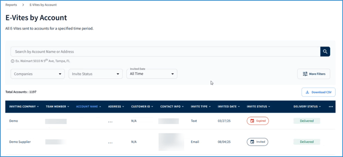 - Invite Type – how the retailer was sent an E-Vite (text, email, or Quick Register)