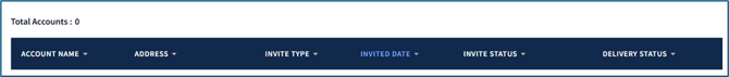 The table defaults to sorting by the 10 most recently invited accounts. You can also sort by a column by clicking on the column's header. Increase or decrease the number of accounts shown by using the Rows Per Page dropdown at the bottom right of the screen: