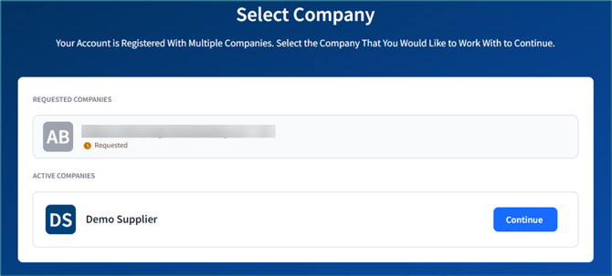 - Administrators - You will be redirected to the Select Company screen where you can choose your company and begin accessing E-Vite: