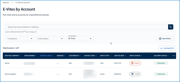 - Account Name – the retailer that received the E-Vite